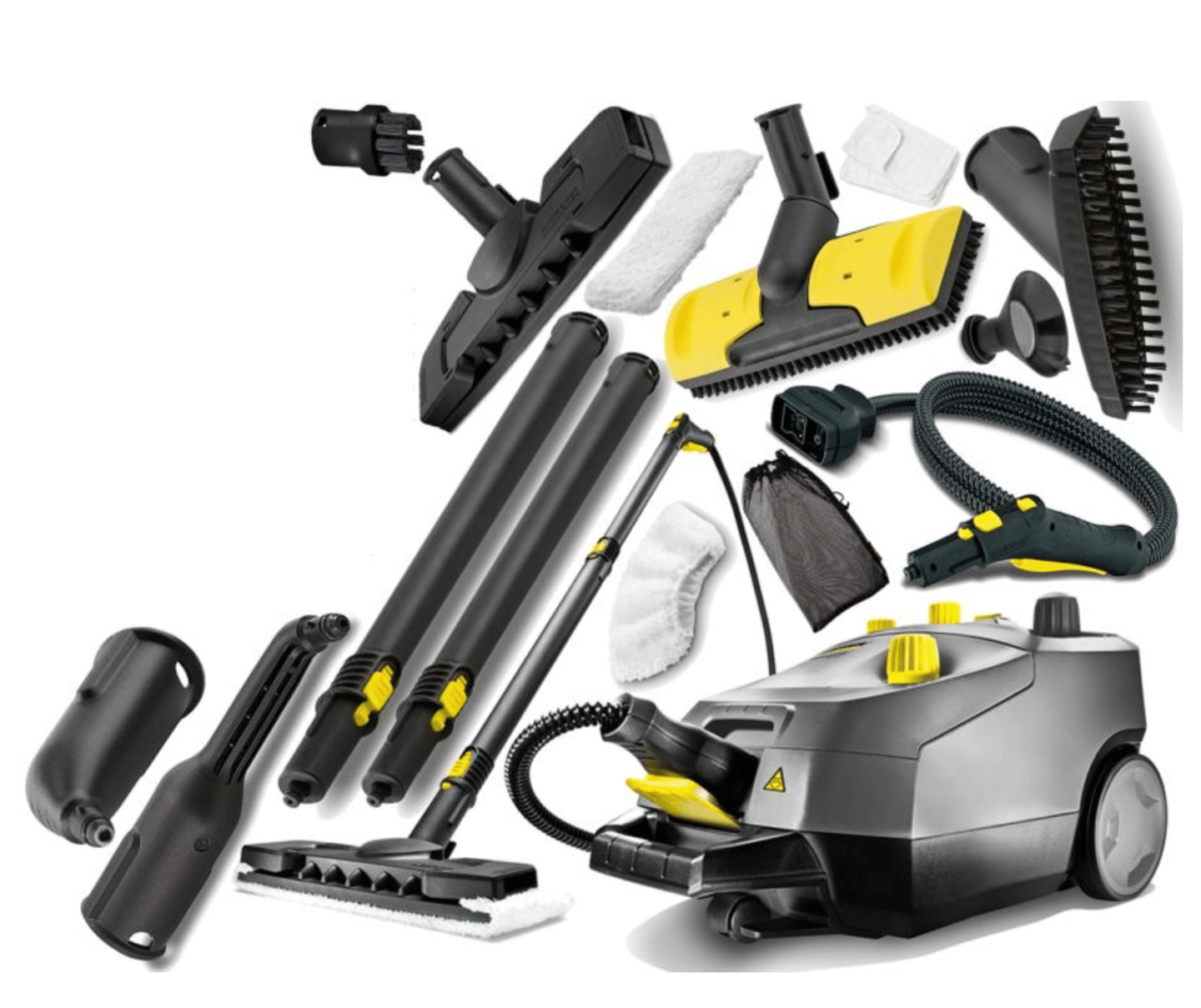 W zestawie dysza ręczna oraz dysza podłogowa. Do wynajęcia lub dokupienia są również dodatkowe akcesoria - m.in. dysza do czyszczenia okien, dysza do fug, szczotka turbo, akcesorium do prasowania parowego, małe szczotki do czyszczenia i ściereczki na dyszę ręczną i podłogową.